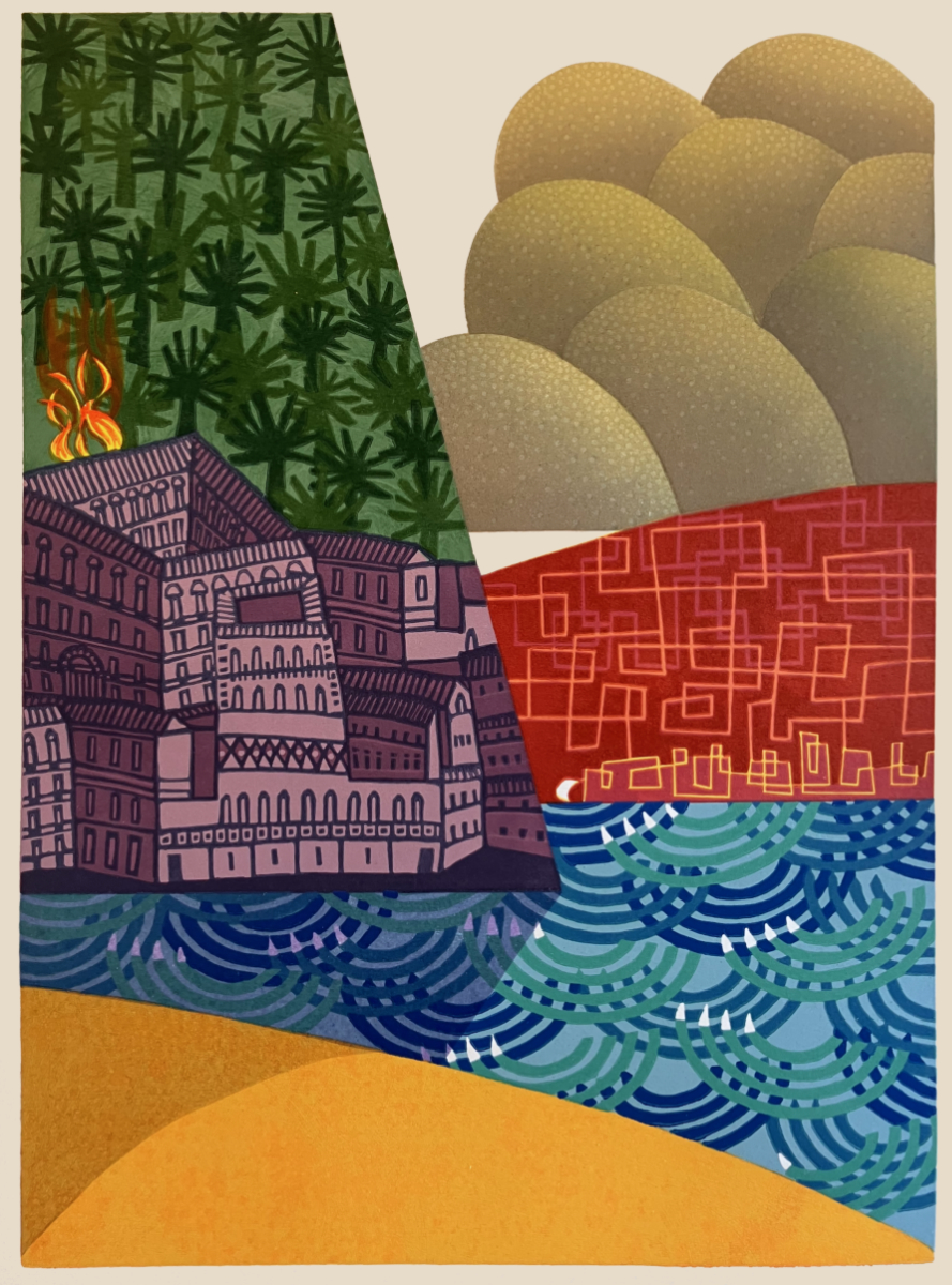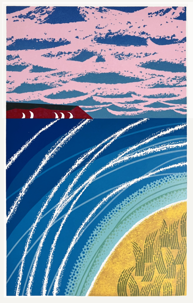 Over the years I have visited, not only many lovely parts of the UK, but also lost of Europe as well. While there I draw and paint, quite a lot. This has developed into many linocuts that are about the coast. Many of these works are abstract in nature, emphasising colour and form, others are more realistic. Some of these linocuts are taken from actual places ion and around the UK, others are complete flights of fancy. They are all cut, inked and printed by hand.