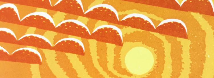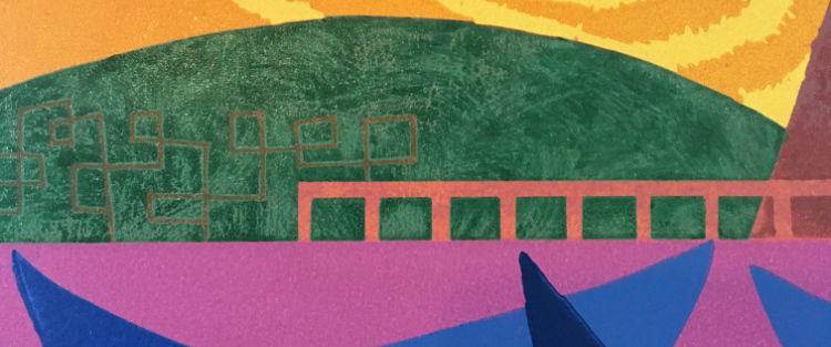 | A look at texture, colour and pattern, pushing on from earlier linocuts. I am forever trying to get back to simple, more abstract imagery but always get pulled back to figurative elements. 2024  |