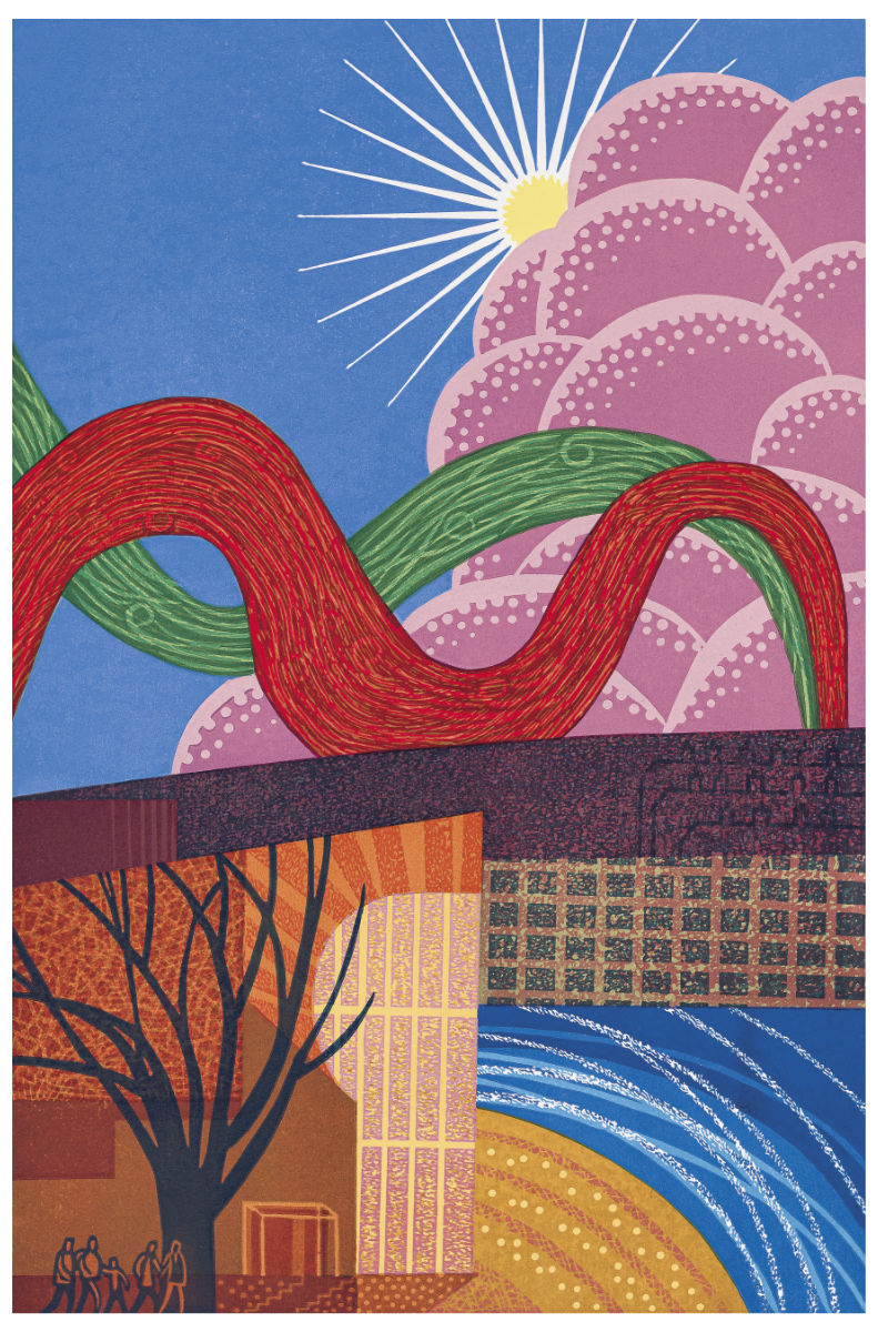 I am drawn to landscapes that exhibit evidence of human habitation, such as buildings, walls, and roads. Consequently, many of my drawings that have influenced or subsequently become linocuts share this characteristic. These linocuts depict a range of settings, from towns to hills to buildings.